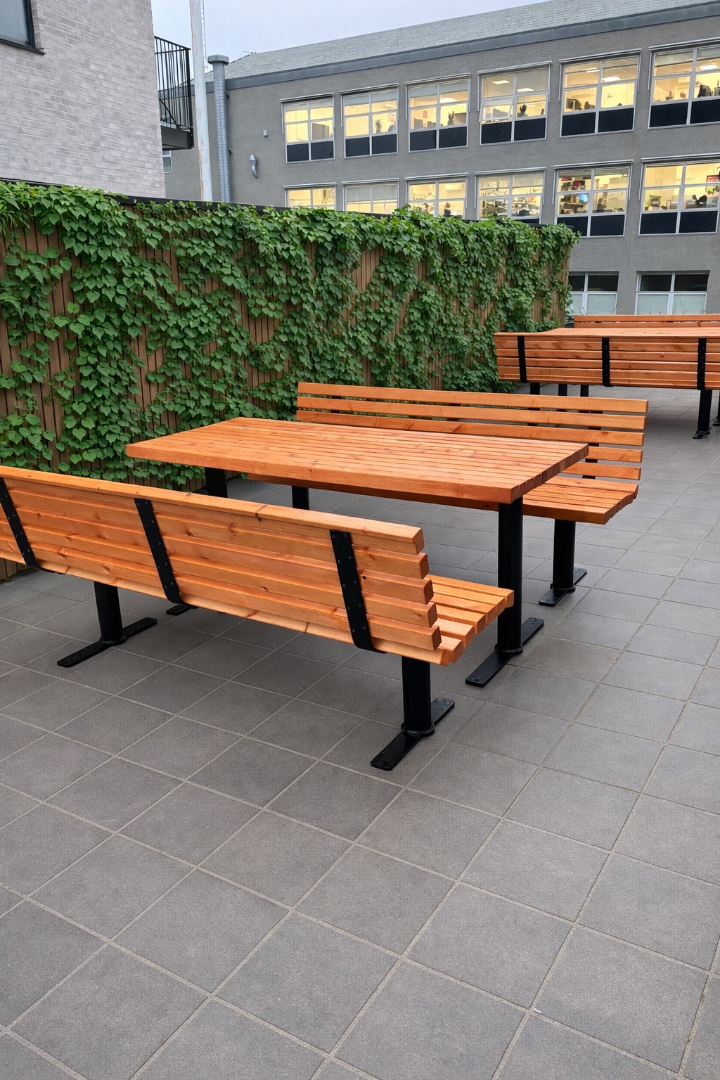 Robust og stabilt bord og bænk, fremstillet med stål stel.