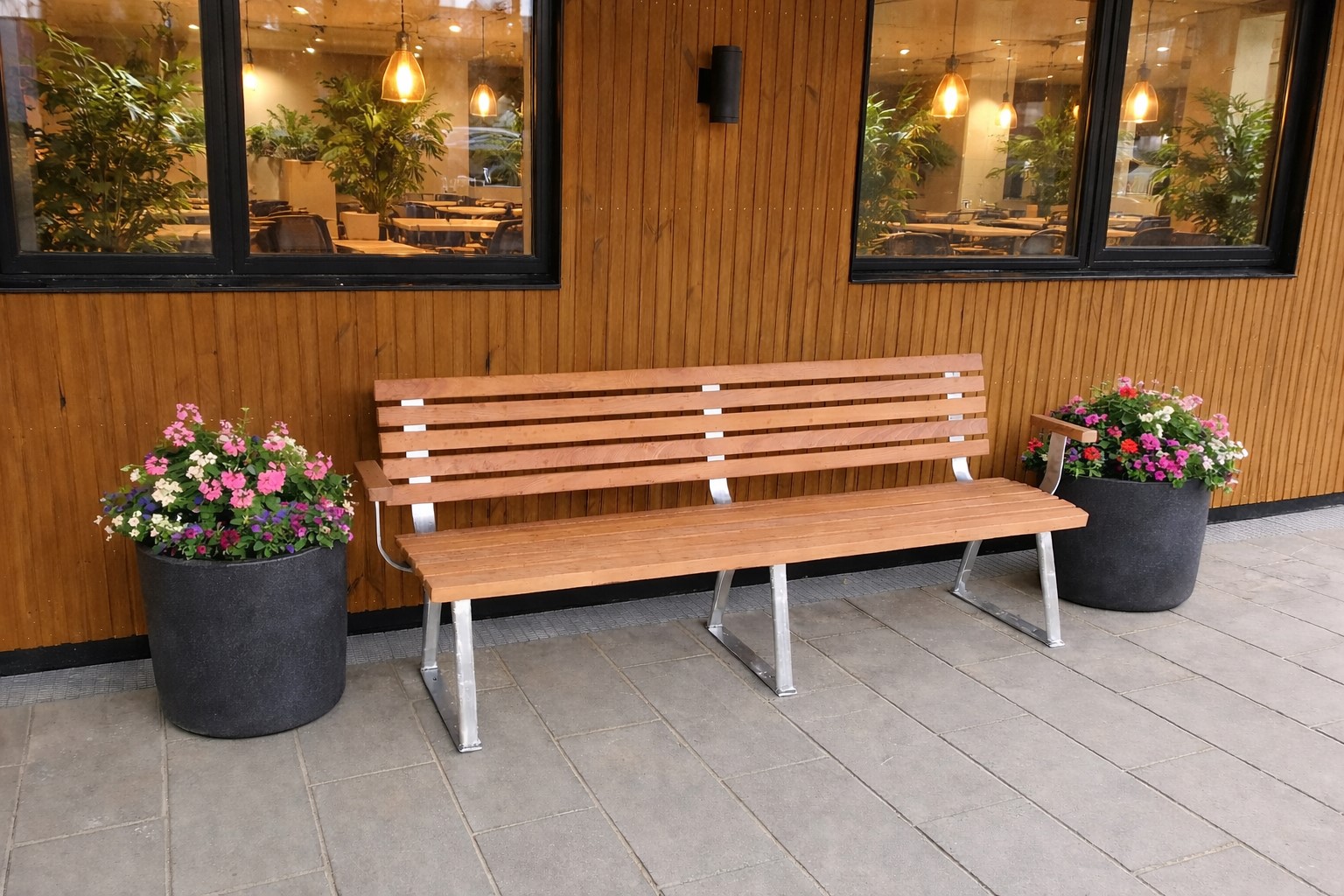 Dansk ergonomisk enkelt stående bænk med armlæn i mahogni.