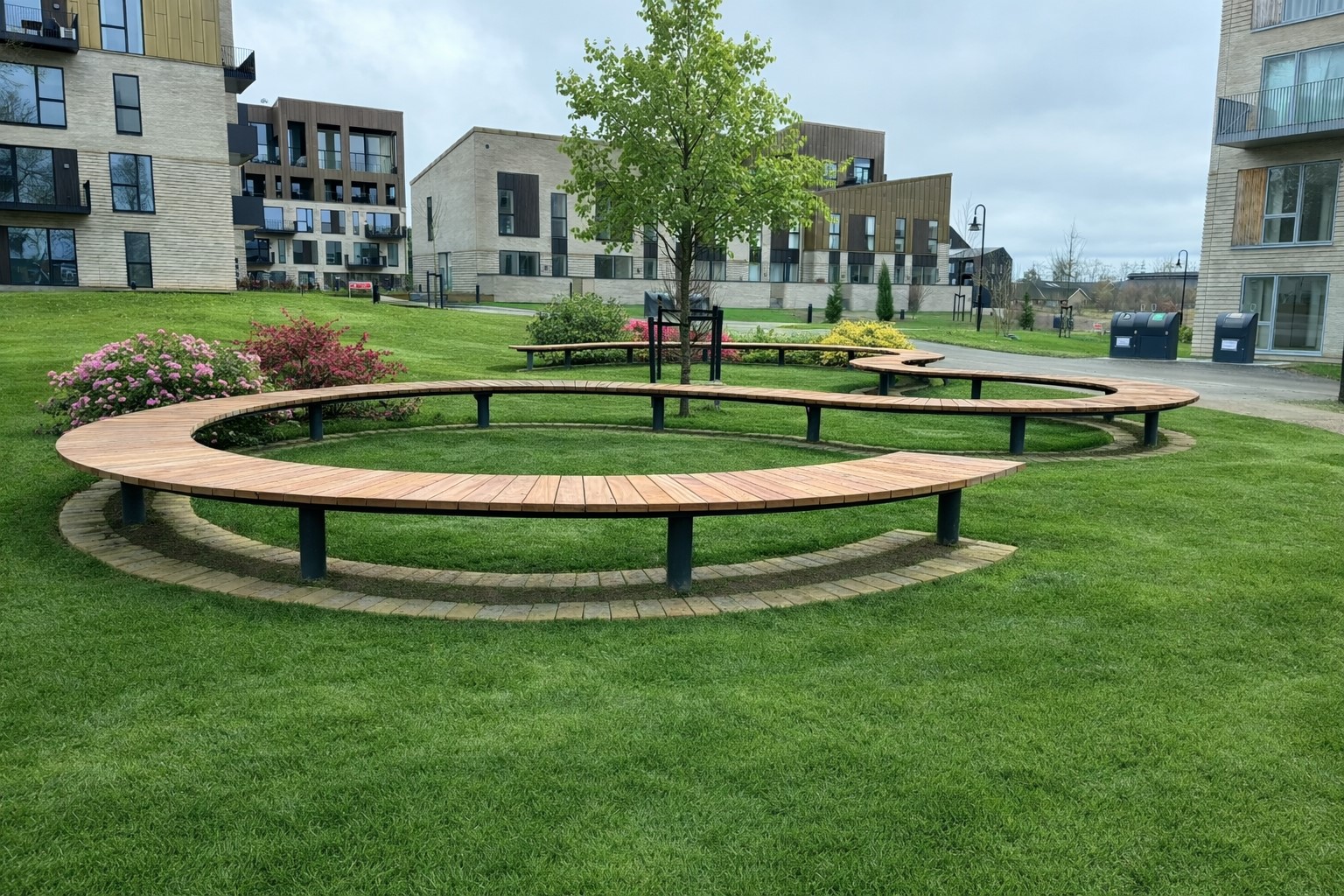 Slangeformet park bænk